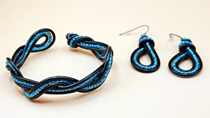Armreifen, Ring und Ohrhänger habe ich in mehreren Farben gefertigt. Alles ist sehr stabil und trotzdem leicht.